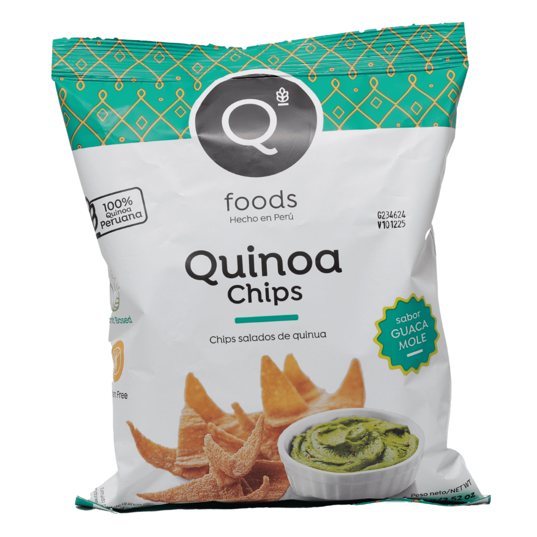 Imported from Peru. Light and crispy quinoa chips seasoned with authentic guacamole flavor. Packed in 100g bags, ideal for retail, cafés, and wholesale distribution.
